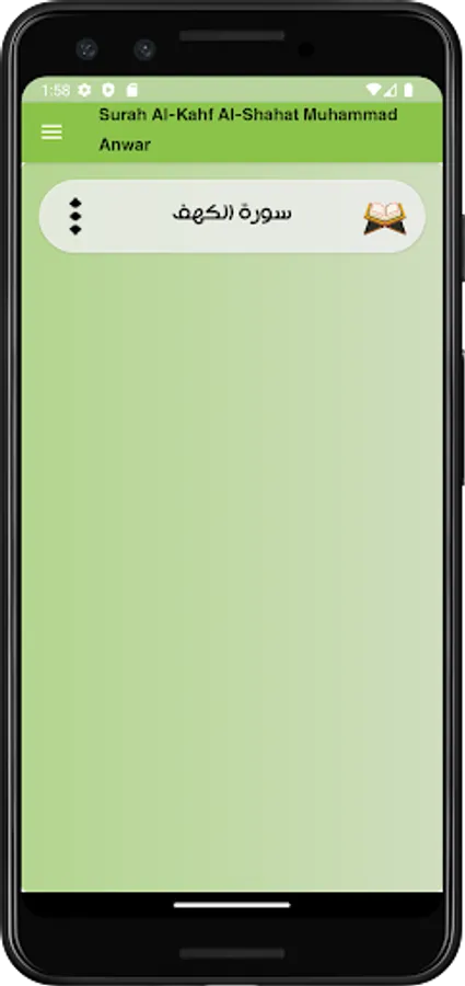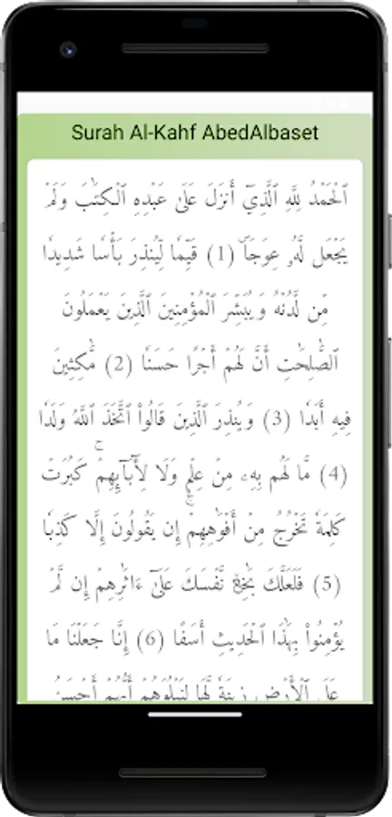 This application includes Surat Al-Kahf written in a large font with the ability to read and recite the surah without the need for the Internet.