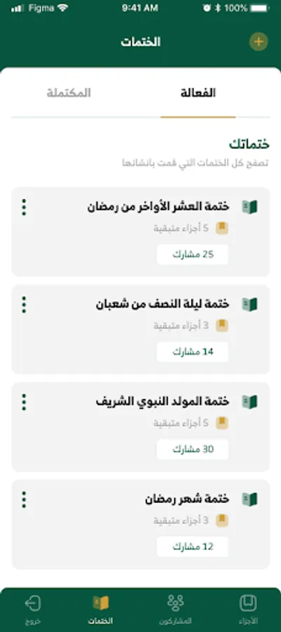 Managing the recitation of the khutma between groups, it is possible to create a khatma and invite friends to recite