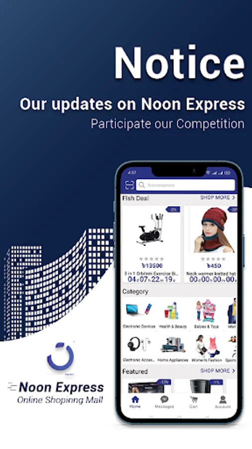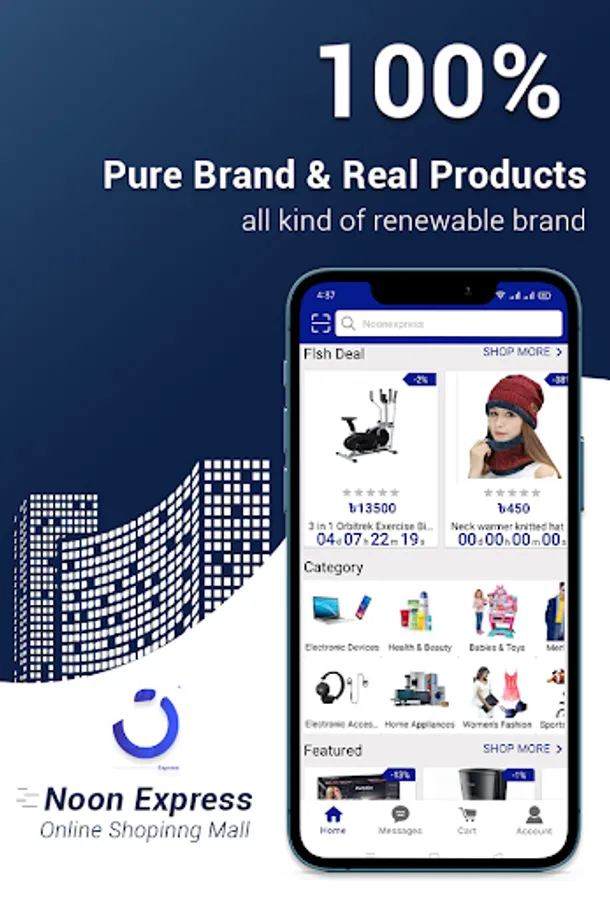 Noon Express Online Shopping App in Bangladesh lets you shop Millions of Products with Best Shopping Deals and In-App Shopping Discounts. Search products, shop by category, compare product prices, read customer reviews, use Noon Express voucher codes, and check status of your orders with Noon Express order tracking facility.