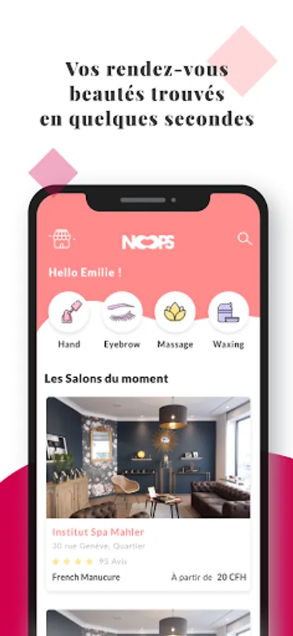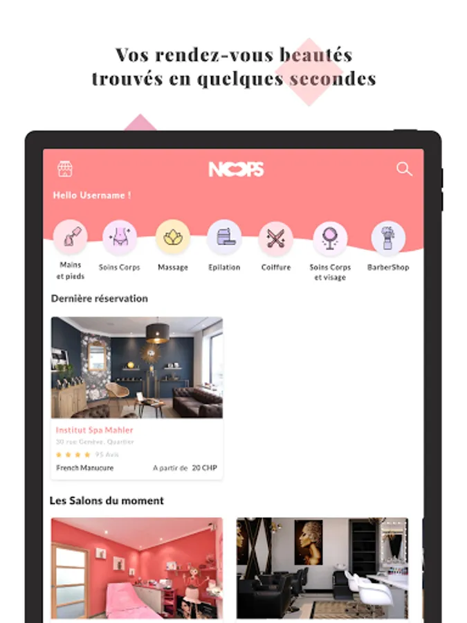 Noops is a mobile application that allows you to quickly book and pay for an appointment an appointment in a beauty center.