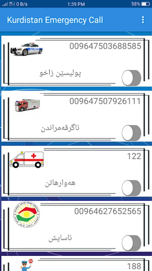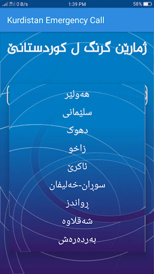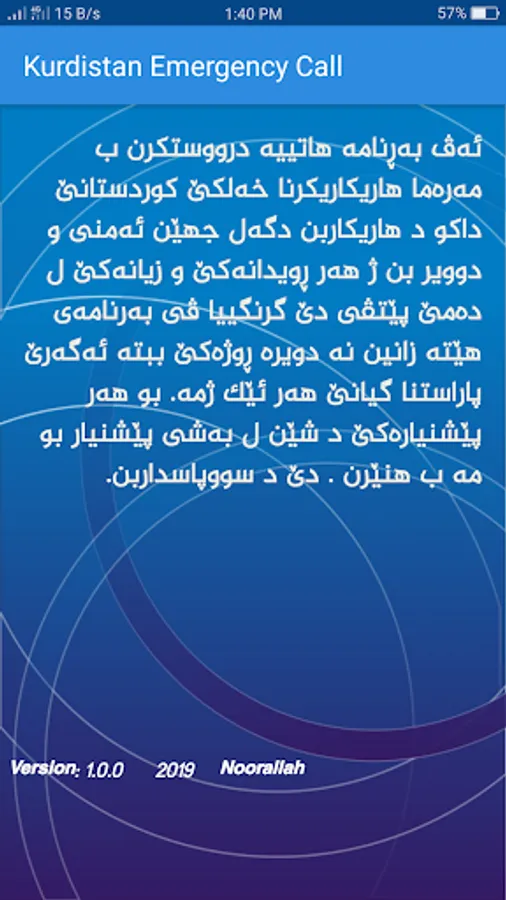 ئەڤ بەڕنامە هاتییە درووستکرن ب مەرەما هاریکاریکرنا خەلکێ کوردستانێ پێک دهێت ژژمارێن گرنگ وەکو ئاگرڤەمراندن،ئاسایش،پولیس...هتد. بو باژێر و باژێرکێن کوردستانێ داکو د هاریکاربن دگەل جهێن ئەمنی و دوویر بن ژ هەر ڕویدانەکێ و زیانەکێ ل دەمێ پێتڤی دێ گرنگییا ڤی بەرنامەی هێتە زانین نە دویرە ڕوژەکێ ببتە ئەگەرێ پاراستنا گیانێ هەر ئێک ژمە هیڤیدارن هەرکەسەک ژ لایێ خوڤە بەلاڤەبکەت داکو ئەم هەمی پێکڤە پاراستی بن.