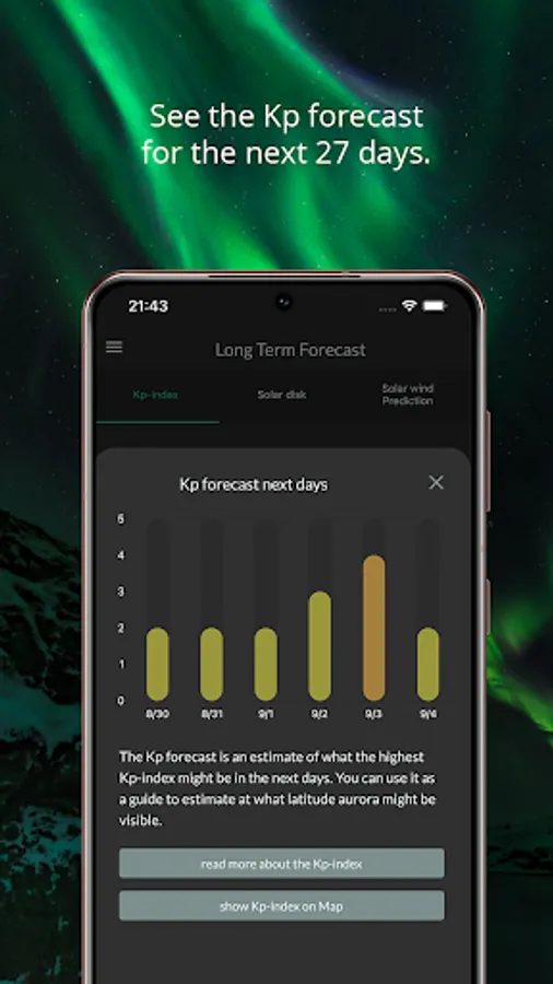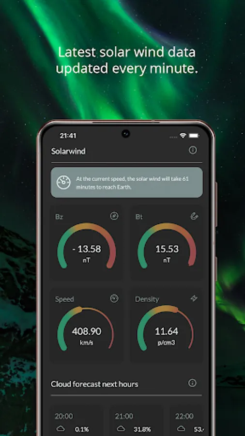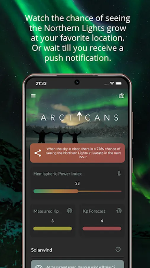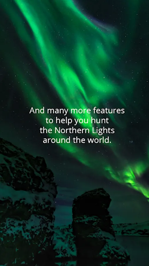Use this app as your personal Northern Lights guide. Our mission is that you will learn from our app and will grow as a real aurora borealis hunter. Not only tourists or photographers but also local people, and guides should work with this app. If you are out searching for an app that will just ping you when there is visible Northern Lights this app will also be the best. We don't just use the solar wind data chance and give it to you, we developed our own algorithm in the field and tested it for over a year. We can conclude that our aurora forecast app gives the best user interface and our aurora alerts are on point so you are on time when you need to go outside.