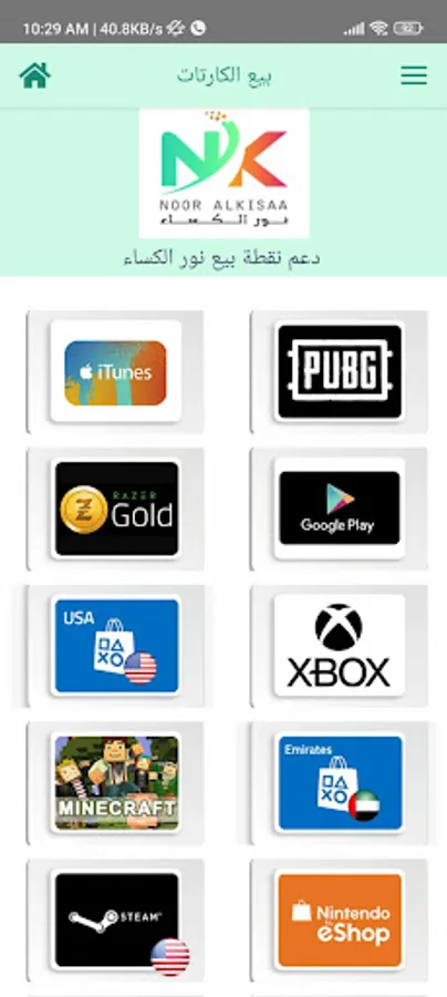 Noor Al-Kassaa Company is a leading logistics services company in the field of electronic solutions. The idea of the project is management (Noor Al-Kasa Company) working with large companies such as Zain, Asiacell, PUBG, and 39 other companies.