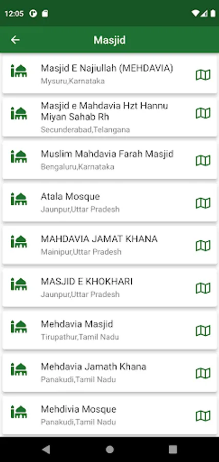 5.An interactive map with locations of Mahdavia Dairah's and Masajids along with GPS Navigations for all locations.