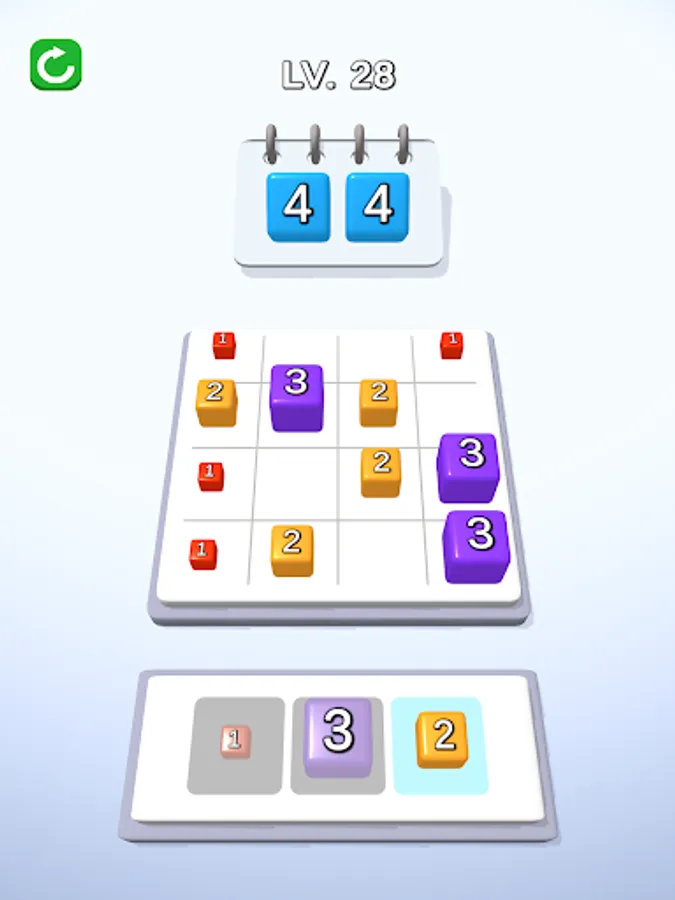 Move the cubes to the correct places, merge them with others and make the required ones.