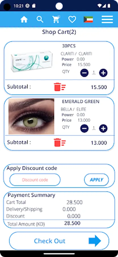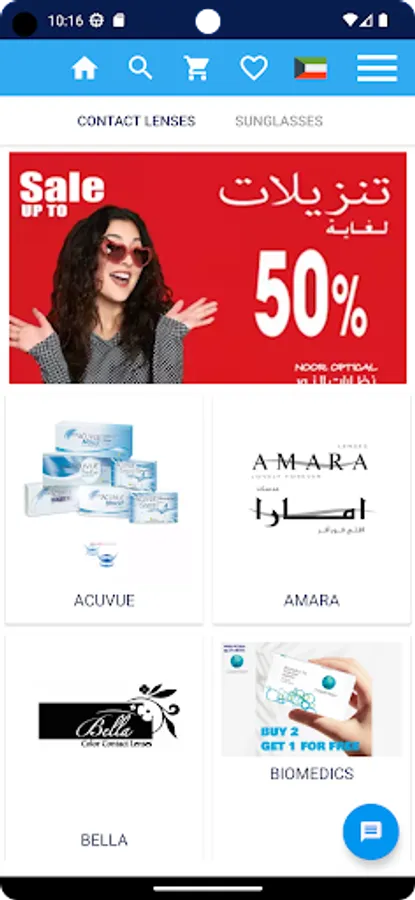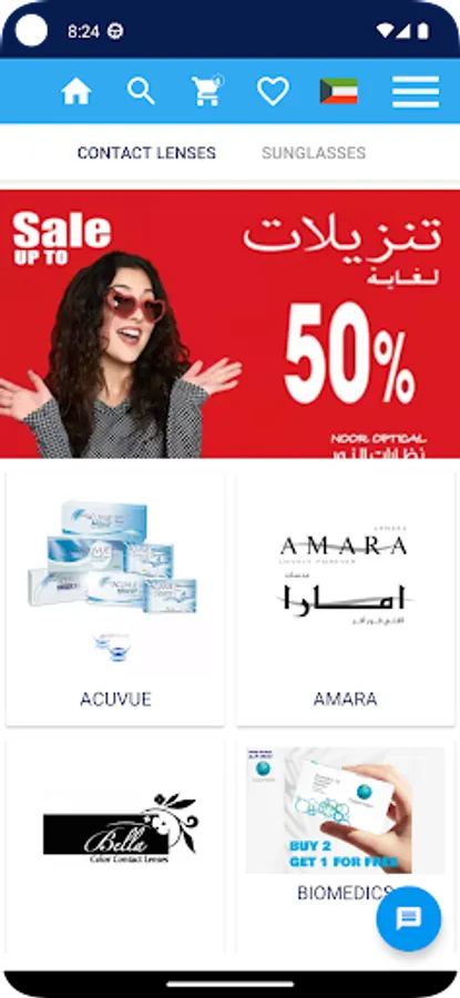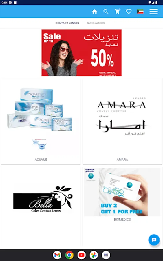 Noor Optical Company a well-known eye wear store in Kuwait now provided a free Android app. Enjoy shopping your favorite brands like Bella, Freshlook, Amara , Loryal ,Dailies , Acuvue, Biomedics, Clarity, Police , Chopard and many kind other brands of color contact lenses ,contact lenses and sunglasses.