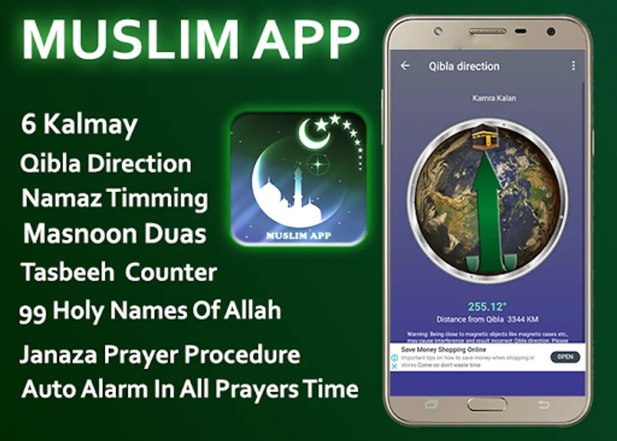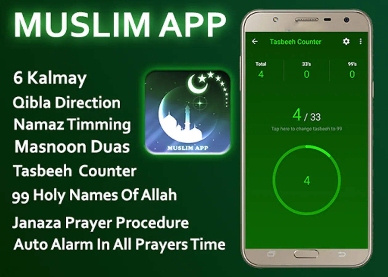 Muslim App, alarms Muslims from all over the world of the time of Azan also find Qibla direction. The direction of Kaaba in Mecca (Makkah) is pointed out with an arrow on the map. The app arranges prayer times according to the City and Country, automatically or manually (of the choice). You can make Dhikrs with the Tasbeeh Counter as well. With the Qibla Compass, you can find Mecca on the map and can set Azan alarm for prayer times.