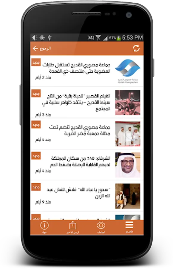 - التطبيق تفاعلي حيث يمكن للمستخدم أن يرسل الخبر من خلال التطبيق مباشرة.