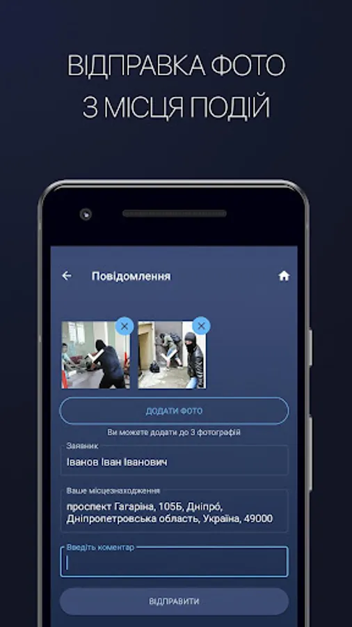 - vіdpravlyati dispatcher tekstovі Notification about nadzvichaynі situatsії that dodavati to their photos;