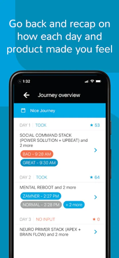 The app includes our “30 Day Guided Nootropics Journey”, which is designed to help you get the absolute most out of your Nootopia stacks.