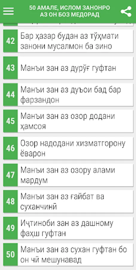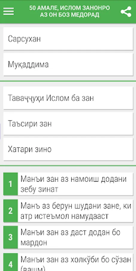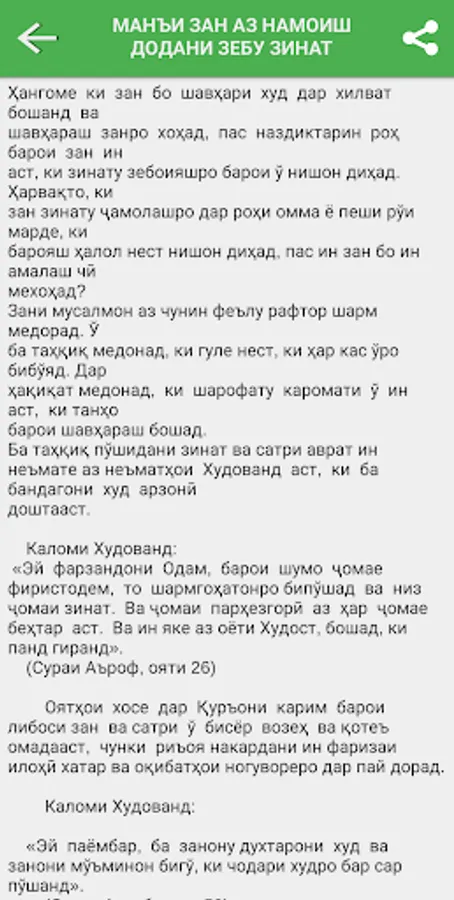 Барнома дар бораи амалҳое занонае аст, ки аз тарафи Ислом манъ шудааст.