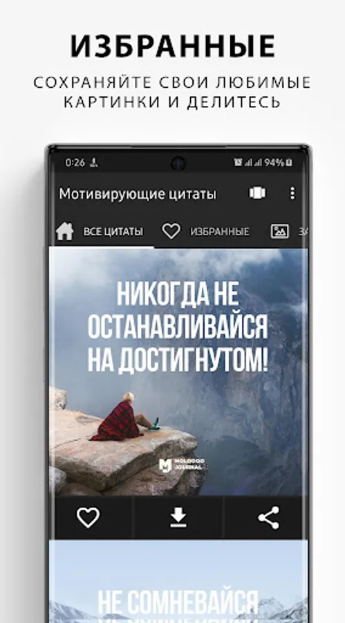 Learning from the mistakes of others and advice is always difficult, but if you listen to someone, it’s better to great, successful people who have managed to achieve a lot with their mind. The application includes a selection of phrases of famous writers, actors, musicians and politicians whose wisdom deserves attention.
