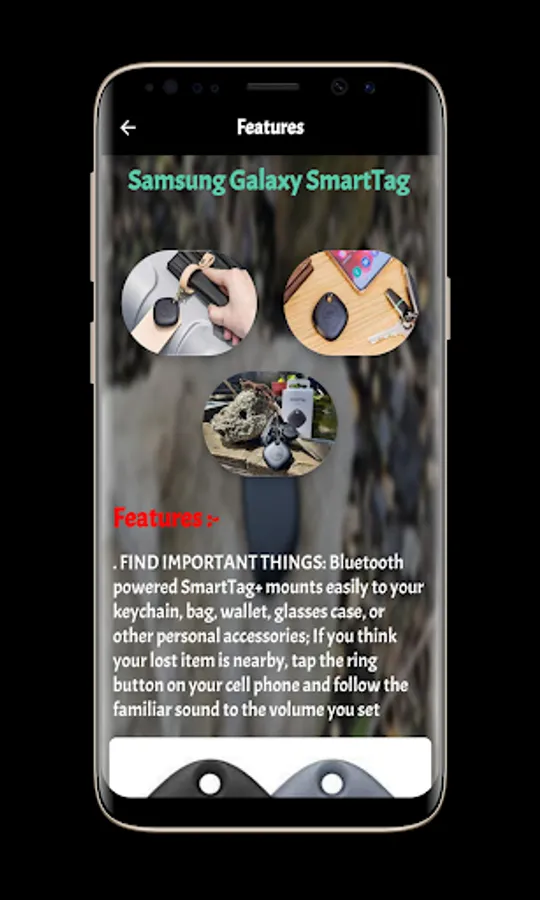 SAMSUNG Galaxy SmartTag Guide is an application that provides you with many ideas on how to use the SAMSUNG Galaxy SmartTag by providing a user guide for the SAMSUNG Galaxy SmartTag, which you can view clearly and easily, and you can also access many of the features of the Guide through the SAMSUNG Galaxy application SmartTag Guide Find the things that matter: The Bluetooth-enabled SmartTag+ easily mounts on a keychain, bag, purse or