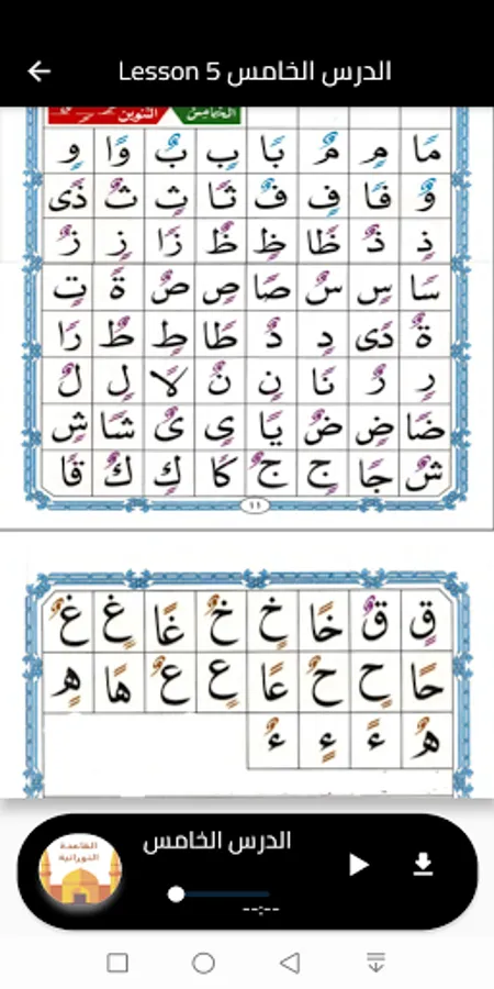 The application of the Nooranya rule includes 17 audio and image lessons. This application helps the learner to know the correct way to learn the Arabic language and read the Holy Quran (listening, reading, pronunciation).