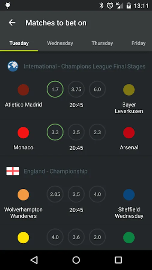 Odds are fetched updated frequently from one of the largest bookmakers in the world
