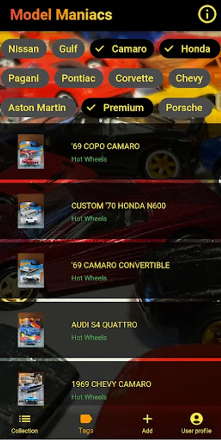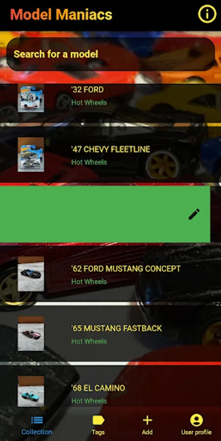 Do you collect HW or MTX car models? We have created an application specially for real collectors. Add, edit and remove your cars from the collection, click on the photo to enlarge it and manage your collection using the system of tags that you create yourself. Check now and have your turn always in your pocket.