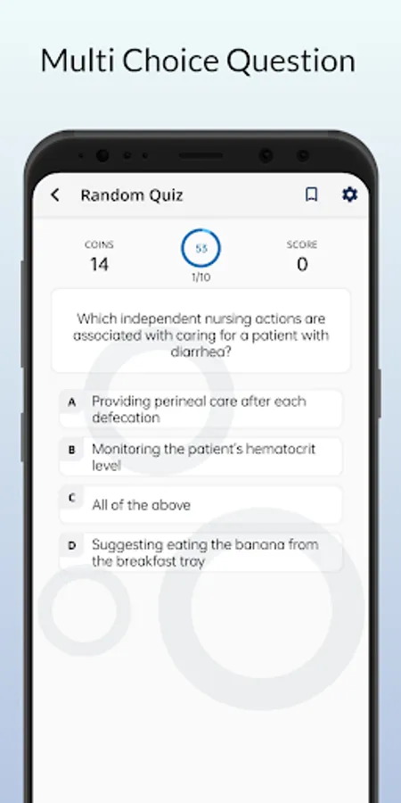 This app consist of extensive study material prepared in the form of Multiple Choice Questions. Here you will get 1000's of Nursing Officer Exam questions for practice and you have to check yourself by clicking on the right answer.