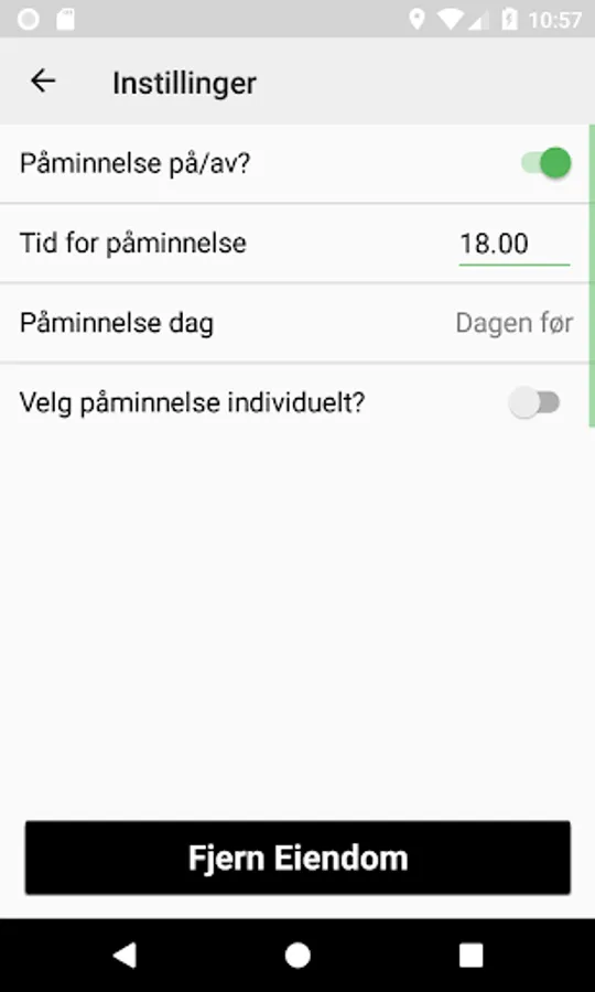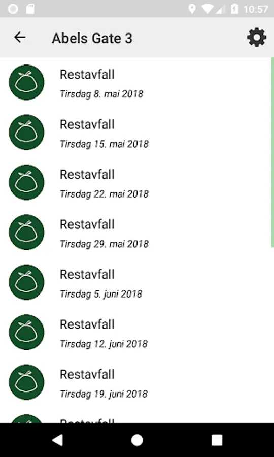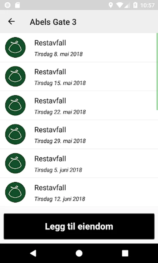 The drain schedule shows the timing of the types of waste to be emptied for selected properties. Notification the day before the day of emptying is automatically set, but can be changed in the settings. You can change the time of notification and if you only want notification for displayed waste types.