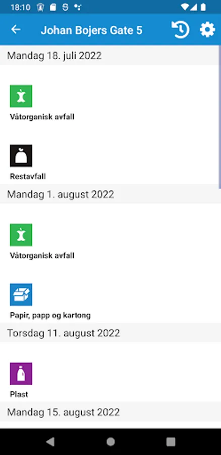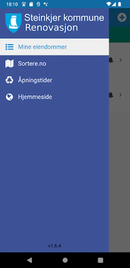 Emptying calendar Steinkjer is an application where subscribers with property in Steinkjer and Snåsa get an overview of which days they have to empty their waste types. The emptying calendar shows the time for which types of waste must be emptied and when for the selected property. Notification the day before emptying day is automatically set, but can be changed in the settings. There you can change the time for notification and whether you only want notifications for certain types of waste.