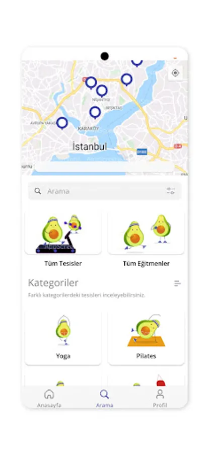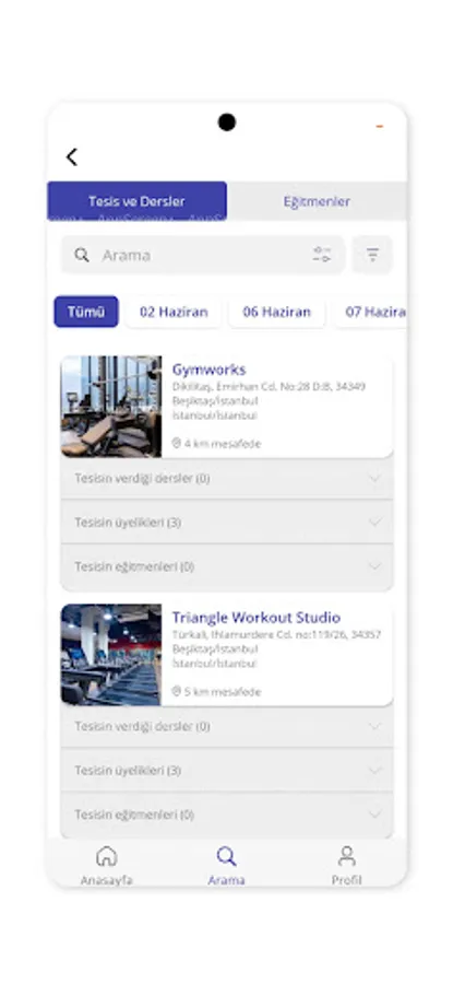 - Explore: Find all nearby sports facilities and private fitness trainers.