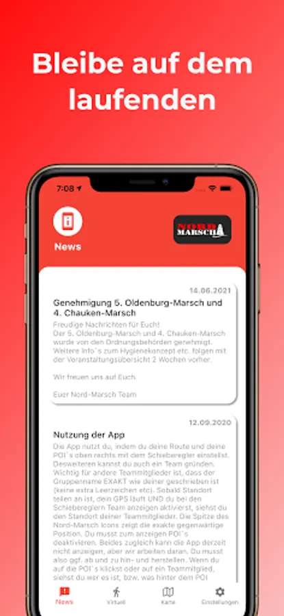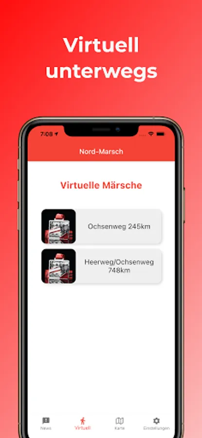 The app is currently in the test phase and the green cabbage hikes have been added, the other marches and functions will be added after the test phase has ended.