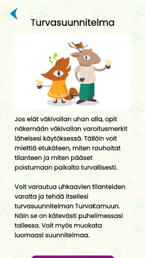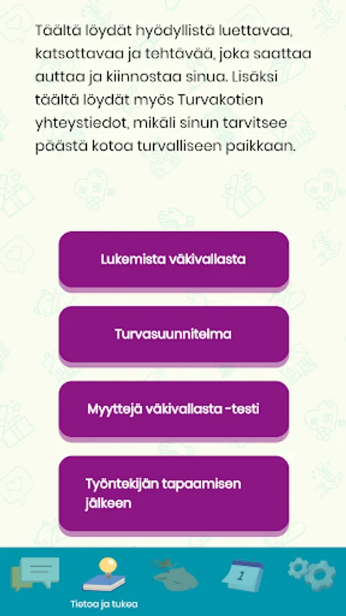 Shelter provides information, presence and security on your cell phone when there is insecurity, fear or violence in the family. The app is designed to work with an employee, bringing support and security to the child and adolescent between employee meetings.