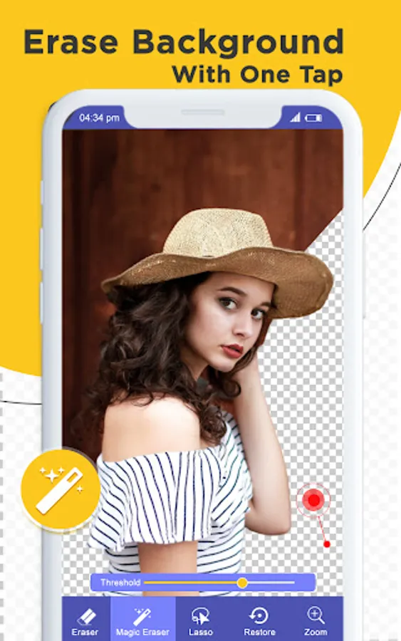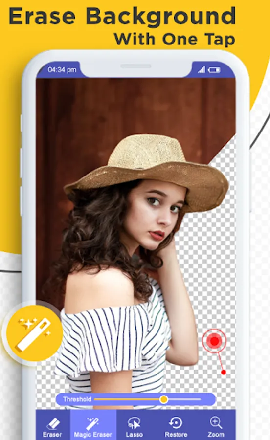 Background eraser is a application to erase the backgrounds of your pictures.By using background Eraser you can choose the area that you want to remove.You can choose a different background to add or leave it with white background.Background Eraser offer lots of different background options like transparent background and white background.Erase background from your photos and save the image in PNG or JPG format.