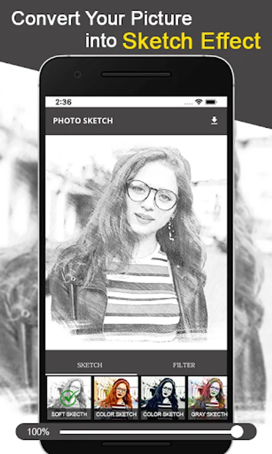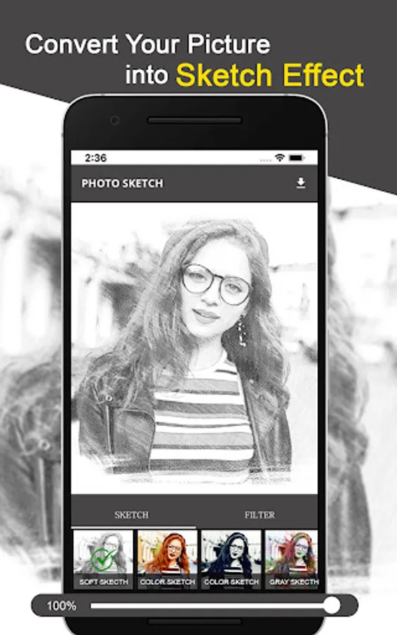 Photo Sketch-Sketching Drawing Photo Editor is a photo editor Sketching app to creat sketch of your photos.Photo Sketch-Sketching Drawing Photo Editor is a great app to turn your photos into beautiful sketch. Pick a picture from your phone gallery or capture from your phone camera to generate the drawing effects and sketch effects.Set different effect on your picture by using Photo Sketch-Sketching Drawing Photo Editor.Photo Sketch-Sketching Drawing Photo Editor provides many effects like oil sketch,colour pencil,cartoon effects and water sketch.