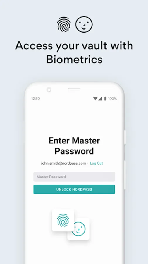 Keep any password safe with a fingerprint lock and face ID. Set up biometric authentication for quick, easy, and secure access to your NordPass encrypted data vault.