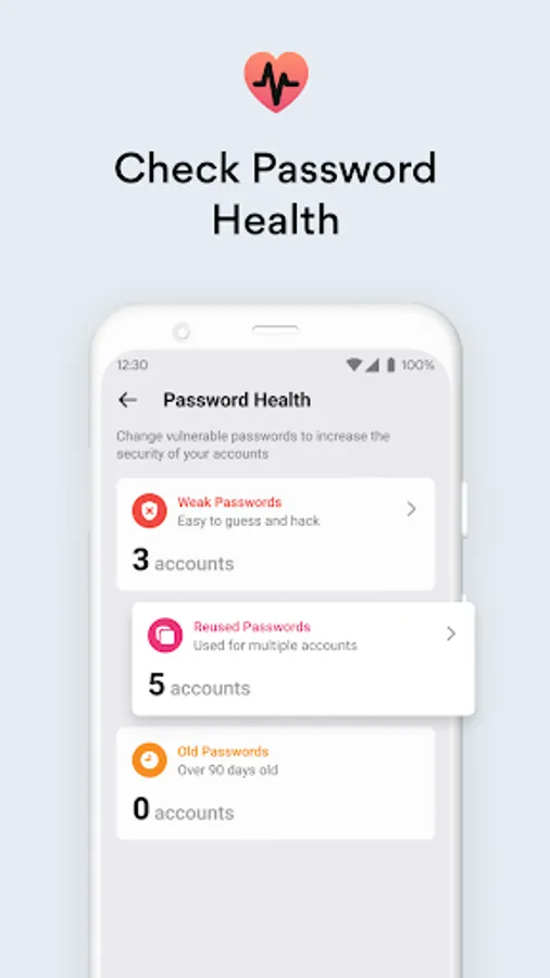 Use Password Health to check if your passwords are weak, older than 90 days, or used for several accounts. If needed, change the password to a new one for more security.