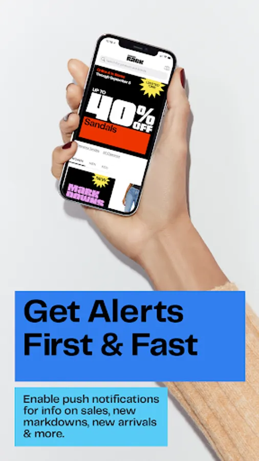 Get alerts that give you the first word on sales, new markdowns, new arrivals, brands, events & more.