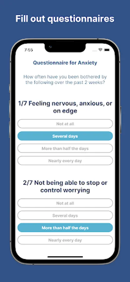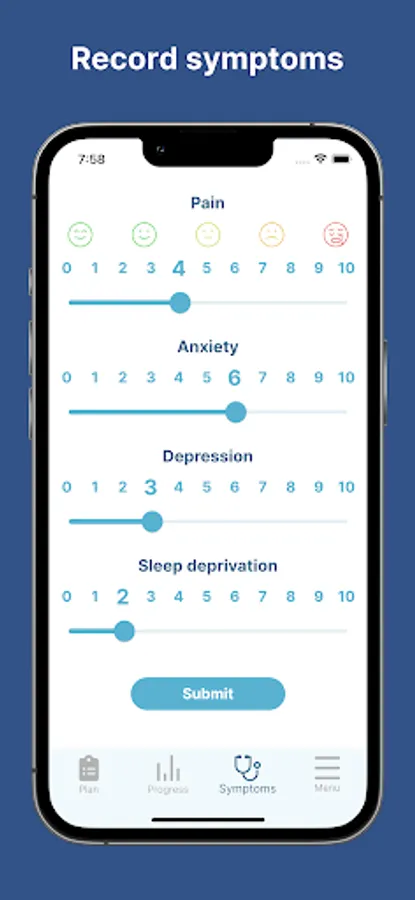 Symptoms. On the Symptoms screen the patient can quickly and easily record their withdrawal symptoms.The patient can also take questionnaires to measure anxiety and depression.