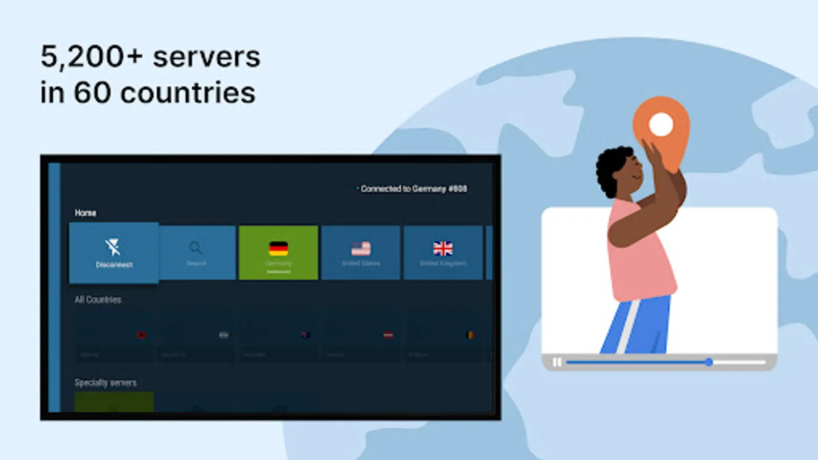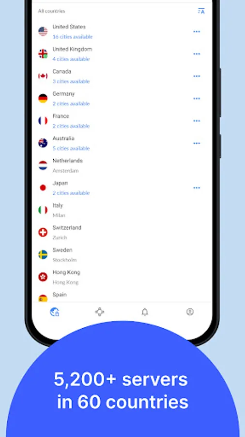 • 5400+ servers worldwide for turbo speeds