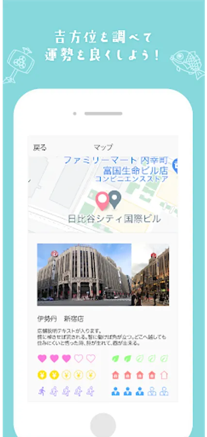 The good direction search app "Ichigeki KOZUCHI" is an app that uses holy numbers to search for a lucky place.