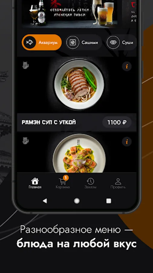 We are responsible for the quality of each dish, because we cook only from the best ingredients: we do not use GMOs or artificial colors, we do not freeze fish in order to extend its shelf life, and we offer only the best manufacturers as sauces!