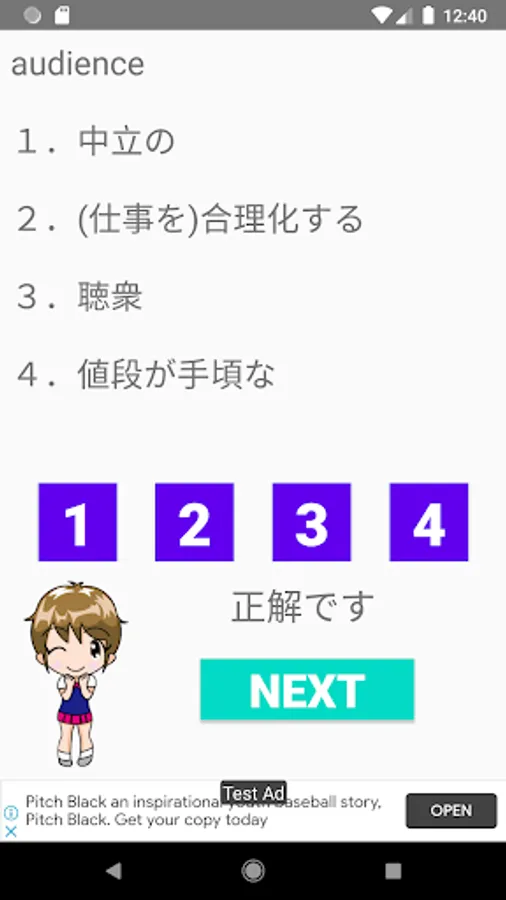 It is an application to learn English words with girls. This is a collection of English and idiom questions that are essential for aiming for a TOEIC score of 600 or higher.