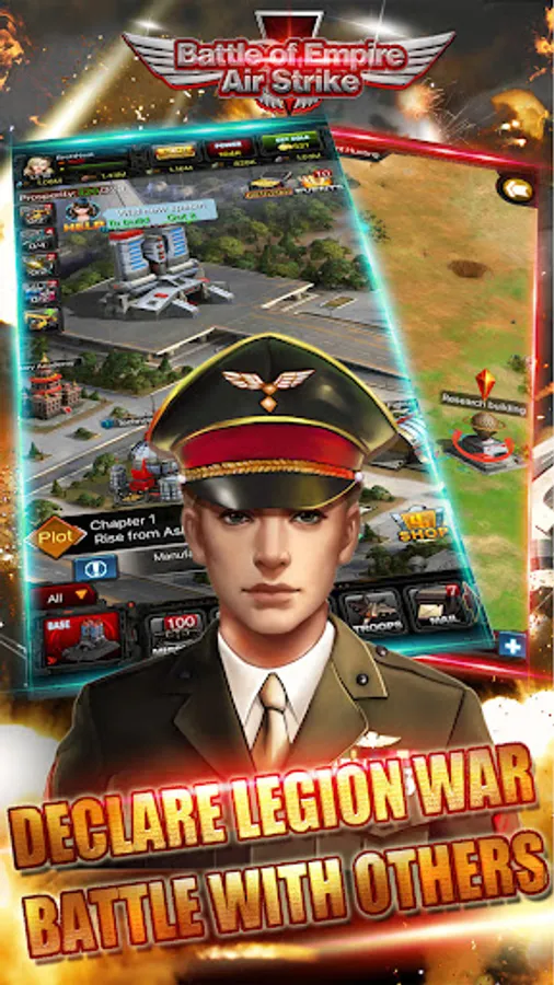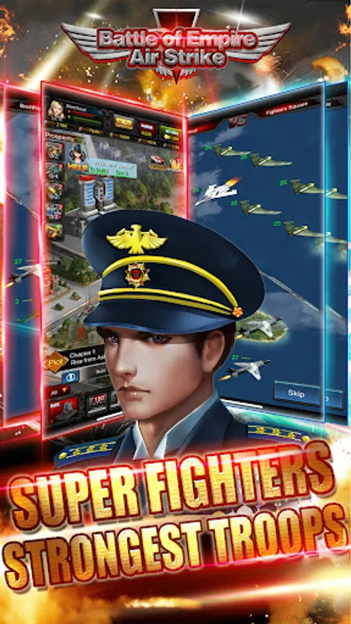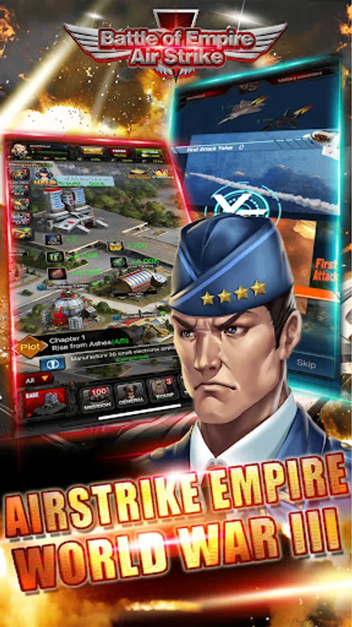 As an air force commander, you will build your cities, develop your air forces, train your armies, leading it on its way to invincibility through countless battles in the sky. Battle other empires from around the world and defend your empire as monsters and other alliance trying to destroy your base. You will gather all sorts of precious resources and challenges in the wild world. It may be a little lonely fighting alone, so build up your alliance and expand your empire with your friends! It's a strategy game that puts forth true to life military struggling between air forces!