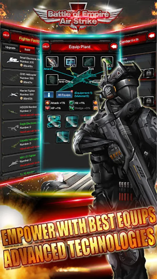 - Equipment and spare part system which makes your fighters invincible