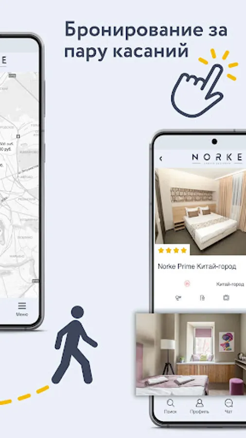 Roomsharing Norke is the official rental service in Moscow and St. Petersburg from the Norke hotel and apartment chain. Just book a hotel room or apartment, check in and check in. Your room key is our app!