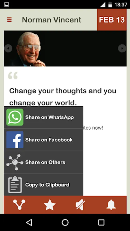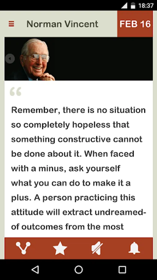 Norman Vincent Peale Daily brings the wisdom of Norman to you in a form of Mobile App, wake up every day, with Norman Vincent Peale's Motivational Wisdom, starting today.