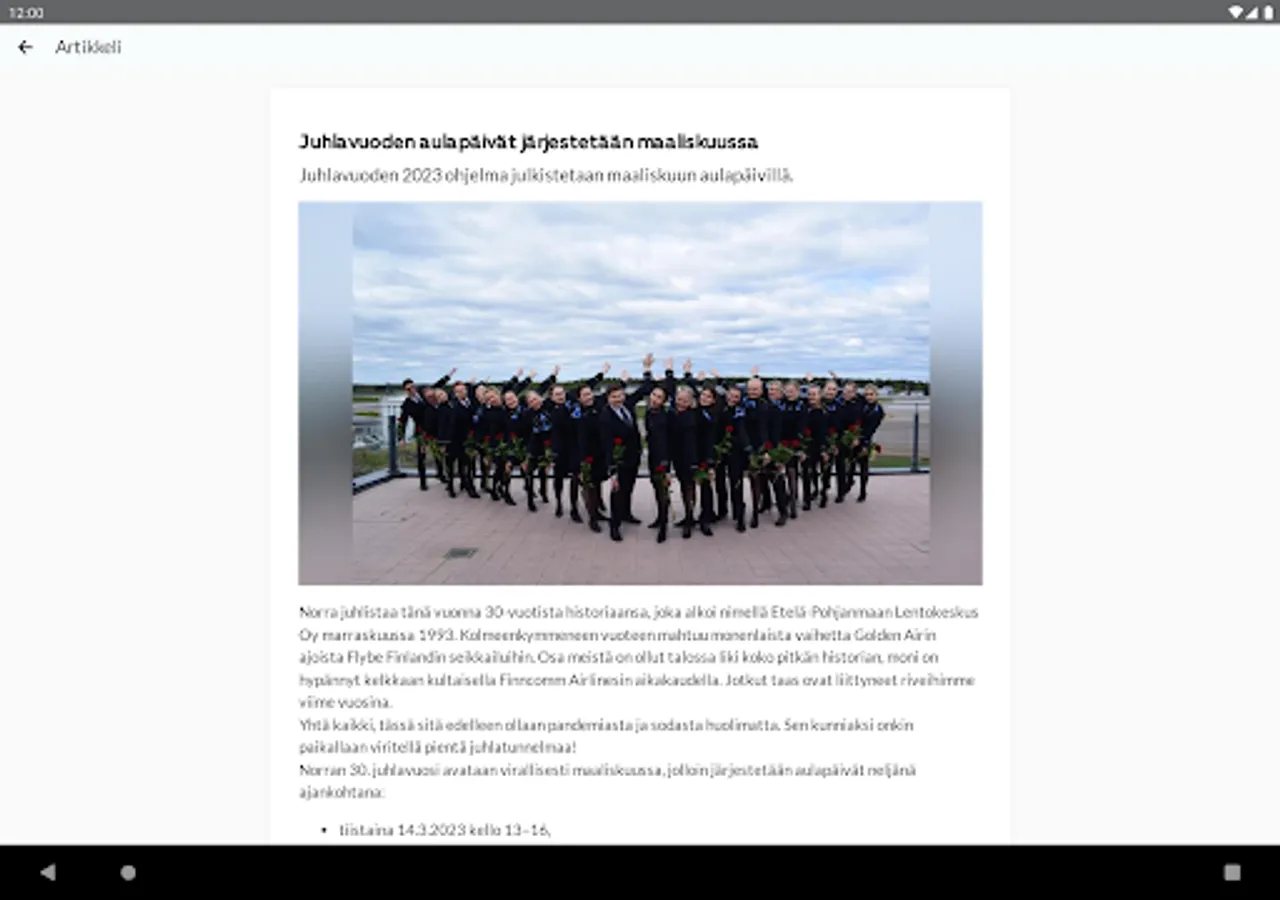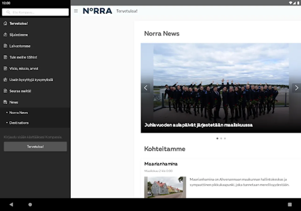 Norra, or Nordic Regional Airlines, is a Finnish airline that specializes in providing safe and punctual feeder air traffic for other airlines in the European region. Norra's own Kompassi application keeps you up-to-date on Norra's news. Through the application, you can read the latest news and media releases and get to know us and our open jobs. In the application, it is also possible to chat with colleagues and receive notifications about important events.