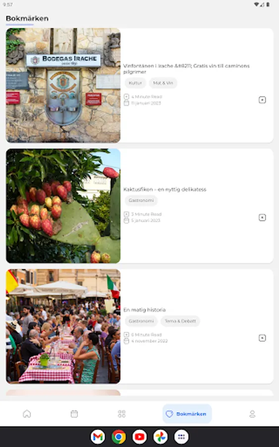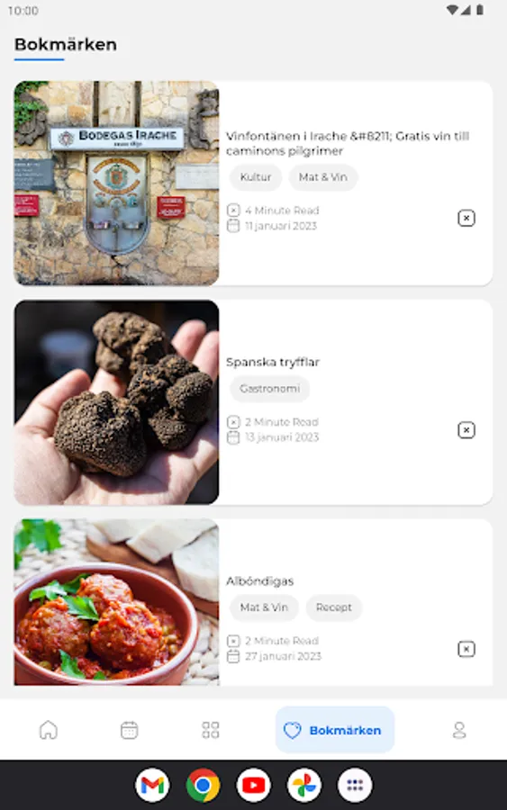 You can easily save an article to read it later if you can't read the entire article right away. You will find all your saved articles under the "Bookmarks" section and you can also easily delete an article once you have read it.