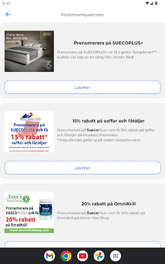 As a SuecoPlus+ subscriber, you get access to a number of member benefits such as discounts and special services from selected advertisers. Simply use your membership card directly in the app when you redeem your membership benefit.
