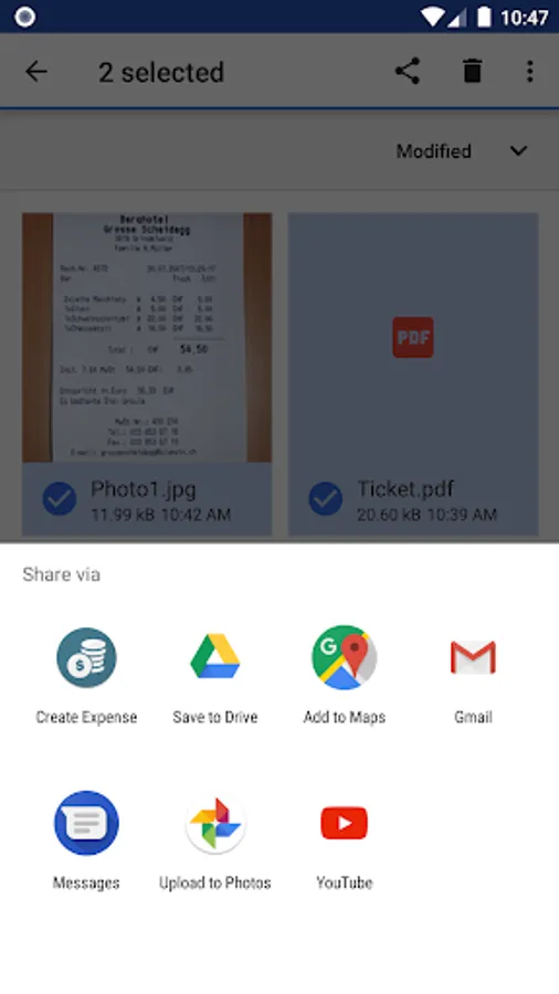 PDF receipts in your mailbox may be transferred directly into the app. Expenses can be assigned to specific jobs in Microsoft Dynamics 365 Business Central.