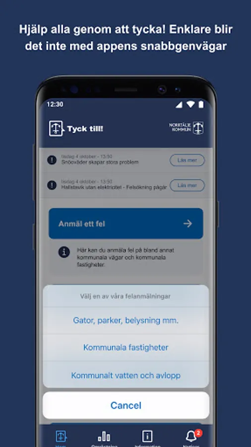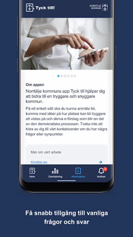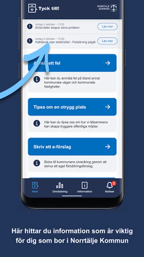 It has never been easier to report errors and contribute to safer streets and squares in Norrtälje municipality. The e-proposals have been given a prominent place to increase participation. The app has a stripped-down design so that you can quickly carry out your errand and take part in Norrtälje municipality's e-services.