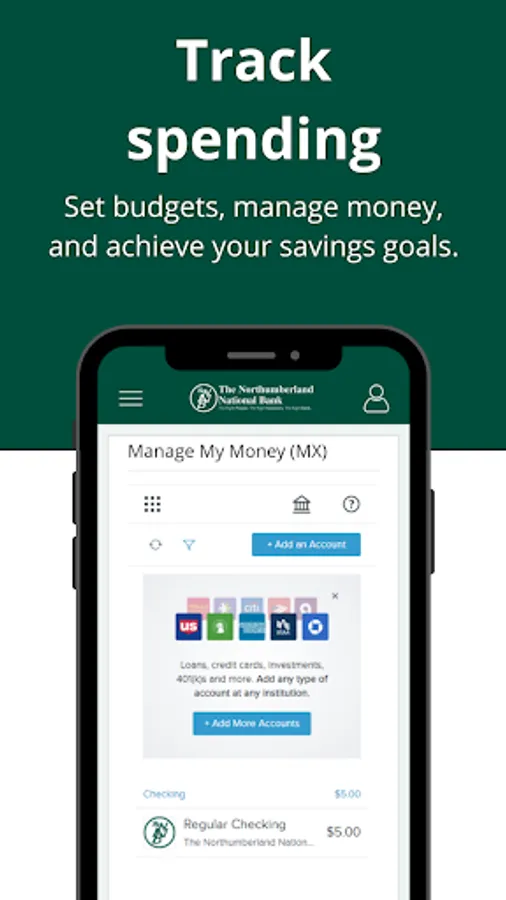 [+] Hamburger menu with all of the transactional tools needed to stay on top of your finances