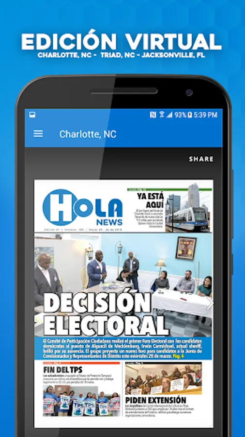 Con un enfoque local de las noticias en cada uno de sus meracados, HOLA NEWS es el referente noticioso de la comunidad hispana de las Carolinas y el Noreste de la Florida, tanto en su edición impresa semanal como en sus plataformas digitales y redes sociales.