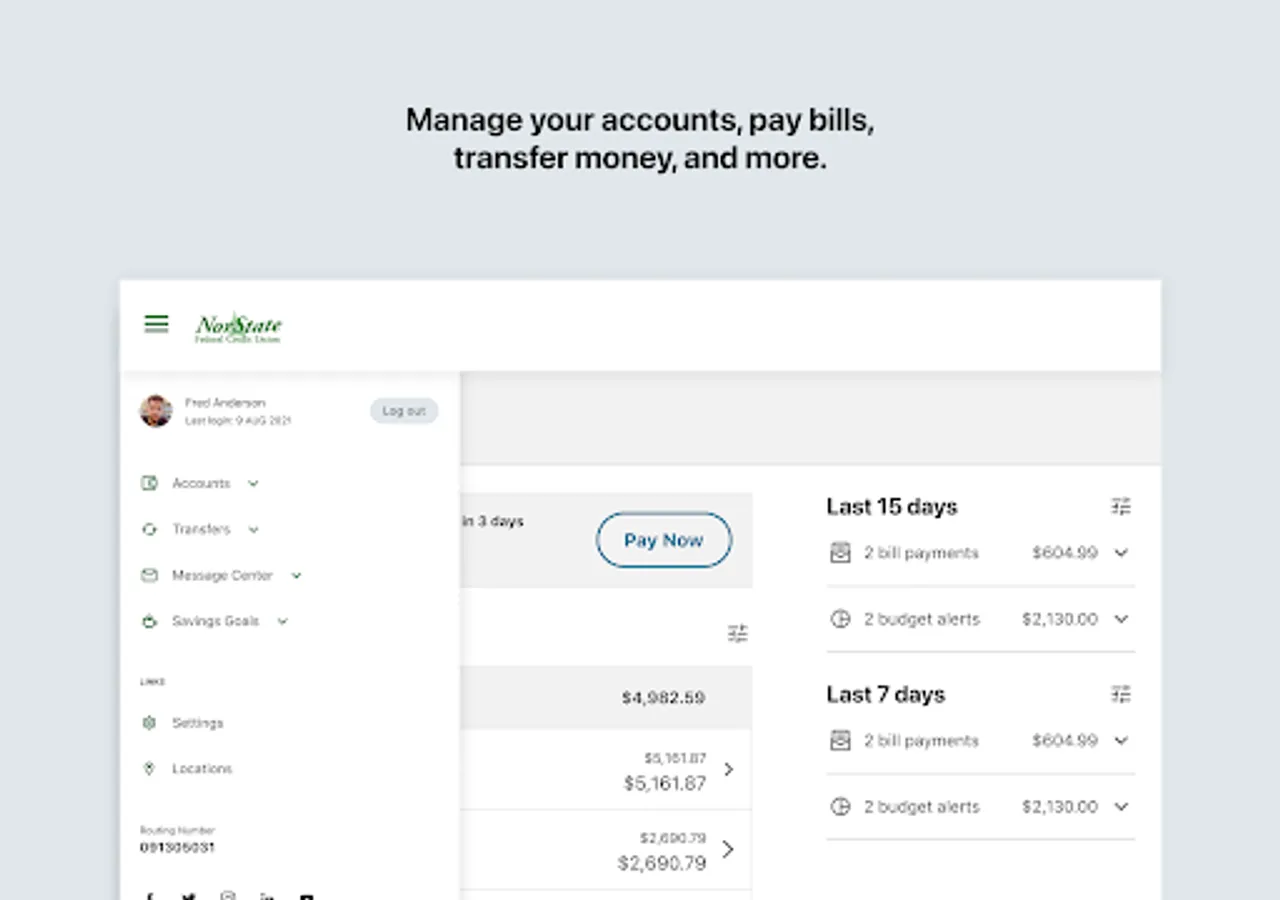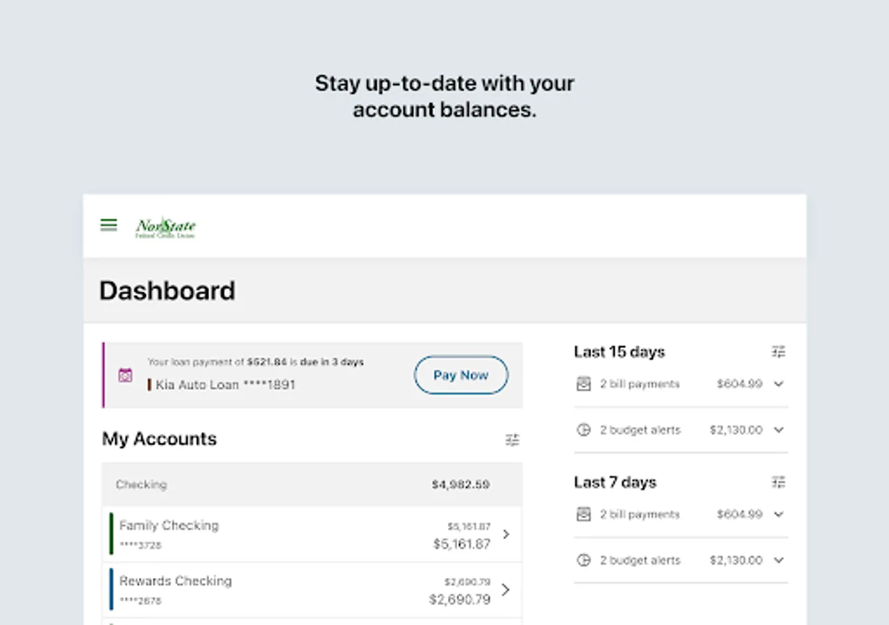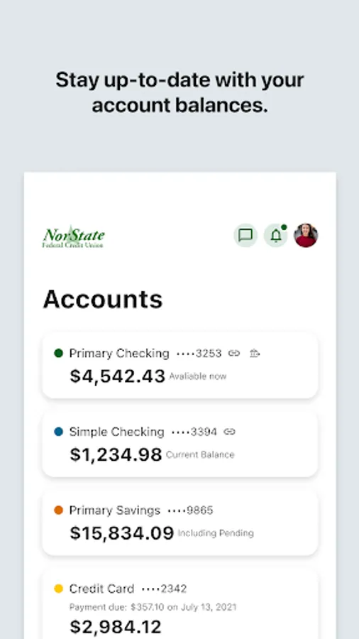 NorState Now allows you to check balances, view transaction history, transfer funds, and pay loans on the go!