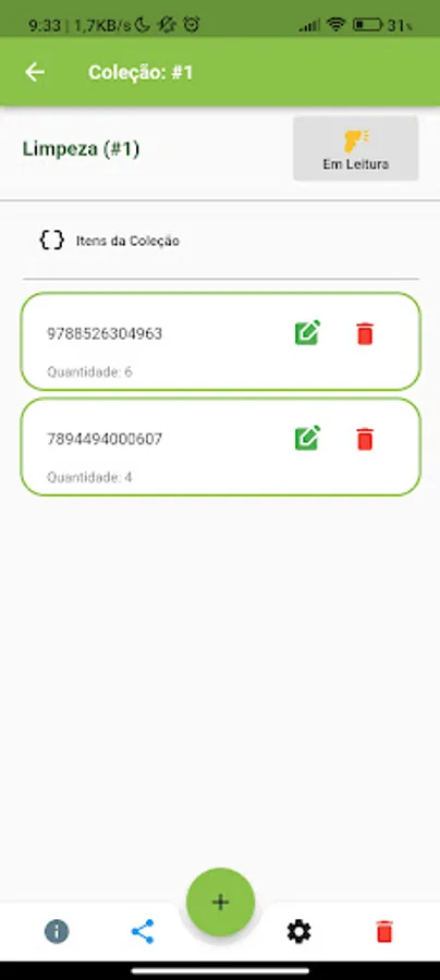 It is possible, in a collection, to add items that contain barcode information, quantity and its value.