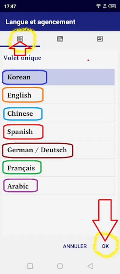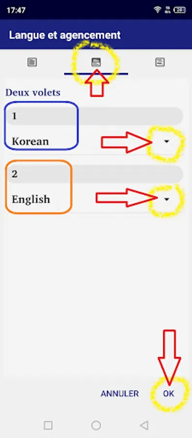 - "two panes" to display the Korean at the top and the English version or another version of your choice at the bottom